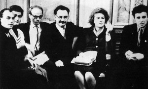 Лідери шістдесятників. Зліва направо - Іван Драч, Микола Вінграновський, Григорій Сивокінь, Леоніда Світлична, Михайлина Коцюбинська, Іван Світличний.