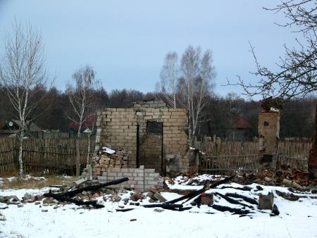 полдома сгорело, провалилась крыша, обвалился кирпич. При этом та часть дома, что из дерева, уцелела. Значит