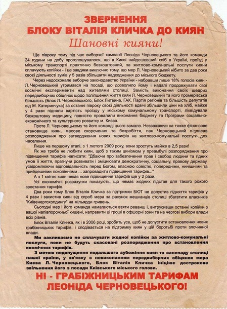 Кстати в этой листовке речь как раз шла о Кличко и его