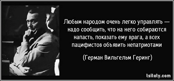 Любым народом очень легко управлять - надо сообщить, что на него собираются напасть, показать ему врага, а всех пацифистов объявить непатриотами.