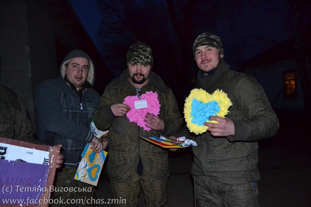 А ще потрібно було передати багато вітальних листівок, поробок, над якими трудилися руки білоцерківської малечі. Особливо багато вітань було зібрано в білоцерківській бібліотеці №6. Невже, як писалося в одному з всеукраїнських тижневиків, нашим солдатам ці вітання не потрібні, а лише набої подавай? Звичайно, боєприпасами треба завалити армію, але ж і про душу забувати не можна.