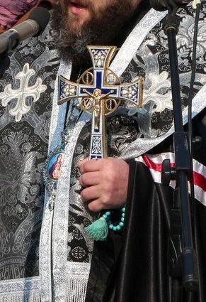 на которой маститый "архиерей" с крестом провозглашает свою