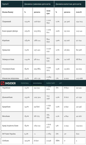 Отток валютных и гривневых депозитов физических лиц состоялся во всей второй группе.