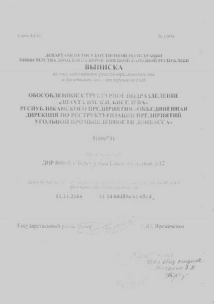 государственного предприятия "Шахта им. Киселева".