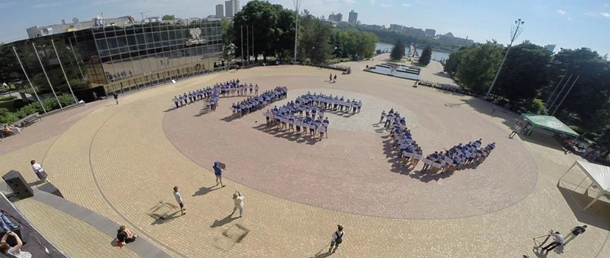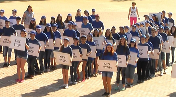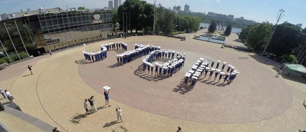 Дети Донецка сегодня вышли сказать «STOP» войне! Сегодня около трехсот школьников в парке Щербакова провели флешмоб. Для того, чтоб их призыв остановить войну услышали, они выстроились в живую фигуру «Kiev stop». Свою акцию дети приурочили Международному дню невинных детей – жертв агрессии, который, начиная с 1982 года, отмечают каждого 4 июня.