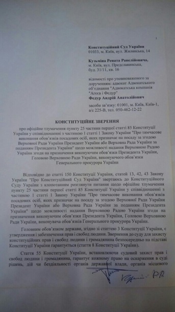 адвокат Андрей Федур в тексте своего обращения к Конституционному Суду Украины.