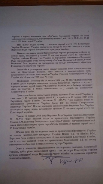 Украины согласия на назначение тогдашним исполняющим обязанности Президента