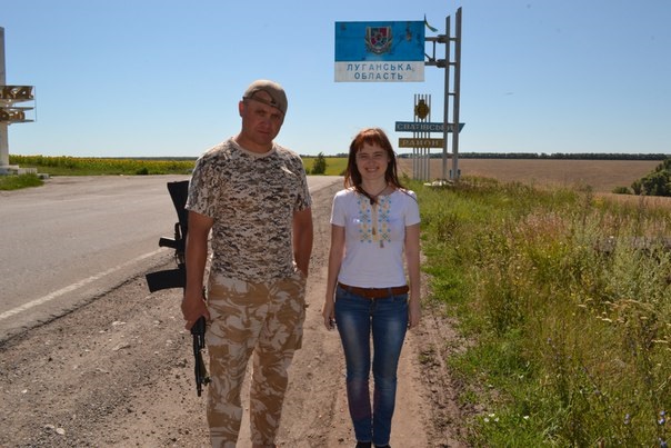 Він в камуфляжі, а вона в цивільному вбранні. Людмилу і її