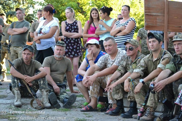 все більше. Крім зенітників підходять літні бабусі, жінки й чоловіки середнього