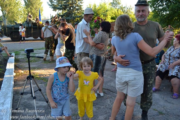 обійняв дружину. Проходили повз нас лисичанці й здивовано оглядалися. Не знати