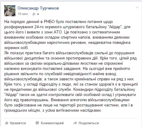 СБУ, а сами батальоны либо расформировывать, либо практически с нуля набирать личный состав. При этом