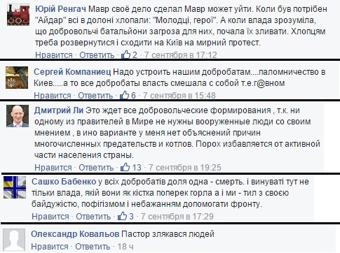 "торга" с противником или иными участниками конфликта. В случае окончания боевых действий, радикалы, недовольные их результатами, вместе с добровольческими батальонами, могут "призвать к ответу" официальные власти – в соцсетях и не только всё чаще раздаются призывы к "походу на Киев", так как "главные