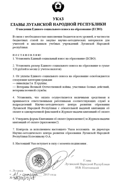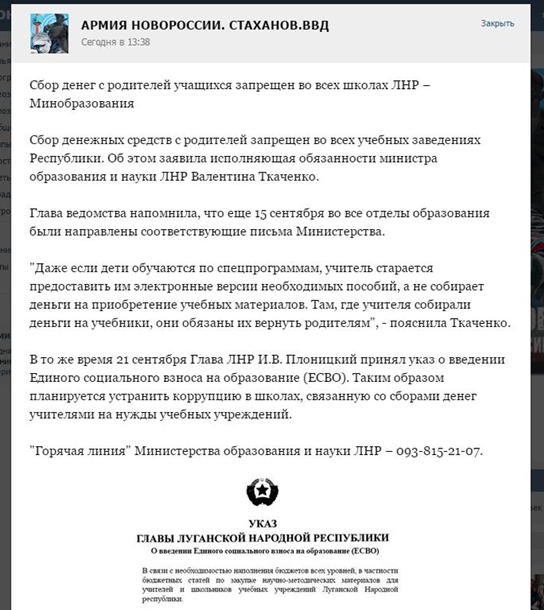 трястимуть гроші з батьків школярів. У ЛНР вводять новий податок - "Єдиний