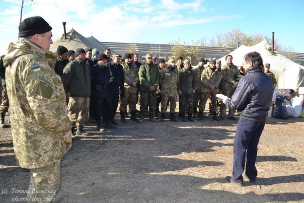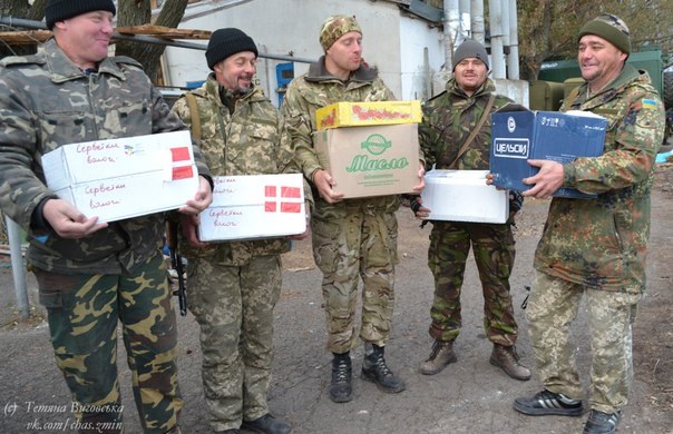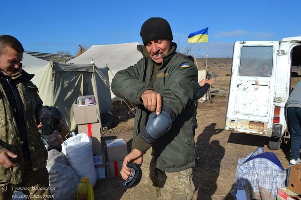 На середину жовтня ситуація в зоні війни стабілізувалася. Збройні сили України почали відвід з переднього краю важкого озброєння. Великокаліберна артилерія, танкові підрозділи починають обживати прифронтові степові балки й вже понад двадцять років розвалені тваринницькі ферми. Вояки потерпають від необлаштованості й так скромного побуту. То ж чи мали право волонтери «Часу змін» залишитися осторонь від проблем армії? Звісно, ні. Ще й свято Захисника України наближалося.