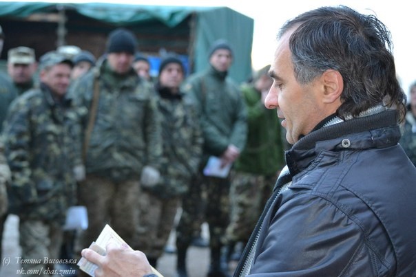 Вивантажуємо частину «гуманітарки», вручаємо смачненькі тортики, вітаємо наших захисників зі святом і передаємо слово Віктору Євтушенку. Знаний гуморист сипонув жартами і дотепами, а потім взявся до гуморесок. Обличчя вояків світлішали, хоч ранок був похмурим. З’явилися посмішки, коментарі, пролунали аплодисменти і справа пішла. Свято все ж таки.