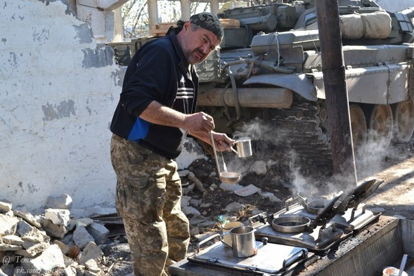 Танкісти отаборилися на території колишньої ферми. Даху в спорудах немає, стіни теж збереглися не всюди. Там стоїть бойова техніка. Кілька рядів наметів вишикувано, як під ниточку. Там живе особовий склад. Комфорт в такому житлі д-у-у-у-у-же посередній. Але танкісти не жаліються. Чути, як гупає метал об метал, діловито бігають туди-сюди в засмальцьованих комбінезонах механіки, подекуди потужно ревонуть дванадцять циліндрів танкового дизеля. Роботи непочатий край. Навіть вбиральня ще не збудована і шлагбаум на імпровізованому КПП. А це системоутворюючі речі військового життя.