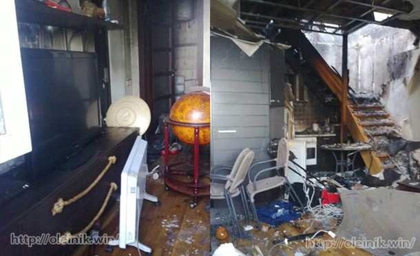 моего сына в Черкассах. Полностью сгорела крыша, и частично выгорел дом внутри.