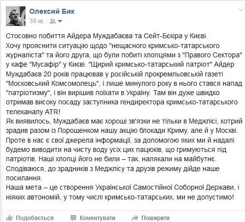 вышеуказанной причине "Правый сектор" и крымско-татарские активисты