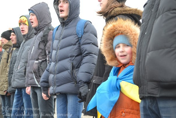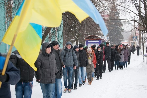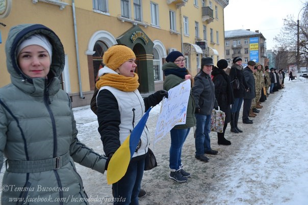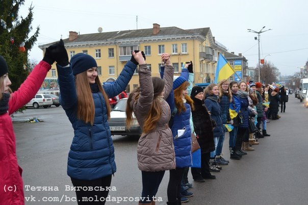 Ланцюг Єднання стала сотня білоцерківців. Це, здебільшого, молоді люди, які твердо