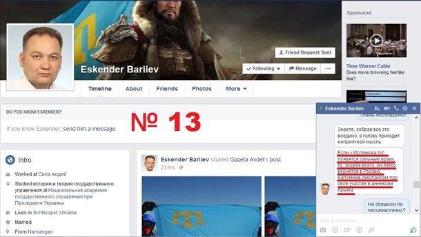 недоверие к Ислямову вполне обосновано тем, что он участвовал в «аннексии» полуострова,