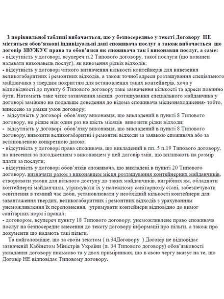 публічний договір від ТОВ «Харків Екоресурс» не відповідає типовому договору