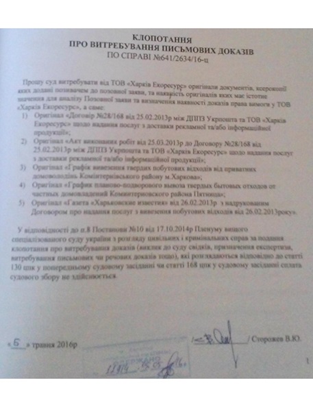 свій судовий позов від ТОВ "Харків Екоресурс". Судовий позов