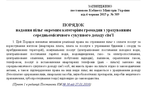 389 (остання редакція - 30.04.2016р.), яка передбачає порядок надання