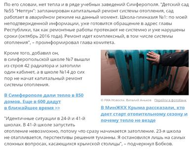 Ситуация с отоплением в Крыму становится все интереснее и интереснее. Так, центральная власть дала старт отопительному сезону с 14 октября, о чем радостно раструбили СМИ. Однако, уже 14-17 октября стали появляться сообщения о том, что министерство ЖКХ разрешило старт отопительного сезона, а власти на местах могут сами принимать решение, когда запускать отопление.