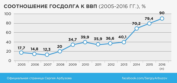 Согласно оценкам Всемирного банка в текущем году соотношение нашего государственного долга к ВВП достигнет 90% ВВП!
