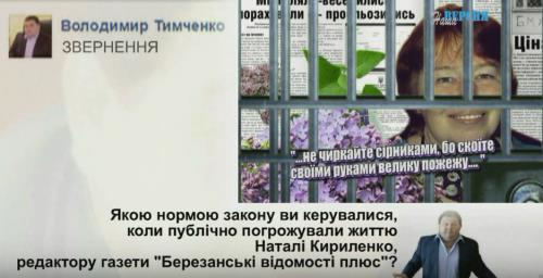 публічно погрожували життю Наталі Кириленко, редактору газети «Березанські