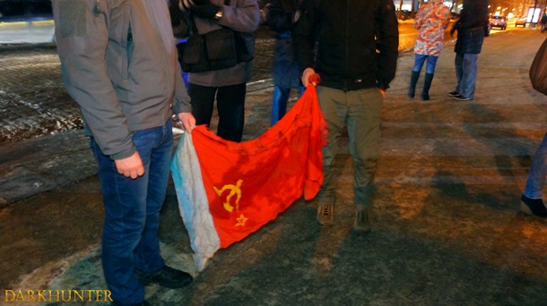 активісти почали його з спалення перевернутого радянського прапора, продовживши