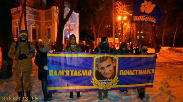 смолоскипною ходою вулицями Гіршмана і Пушкінської, з гучними вигуками вкрай