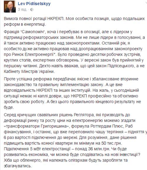 буде», - заявив на своїй сторінці Facebook Лев Підлісецький.