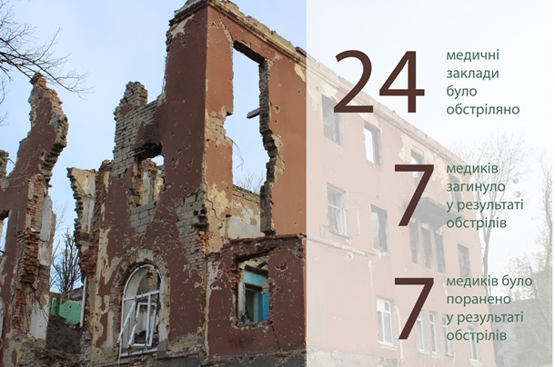 Міжнародним правом встановлені обмеження щодо способів використання дозволених видів зброї та ведення військових дій - забороняється атакувати чи бомбардувати незахищені міста, селища, житлові будинки чи споруди, в тому числі, лікарні, госпіталі і т.д., за умови, що ці будівлі і міста не служать одночасно військовим цілям. Починаючи з травня 2015 року представники ЛОПЦ «Альтернатива» проводили моніторинг ситуації із обстрілами медичних закладів.