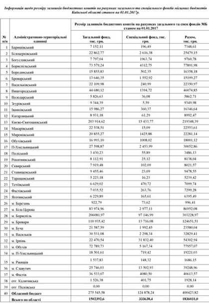 зведену інформацію про залишки місцевих бюджетів Київської області. Якщо проаналізувати
