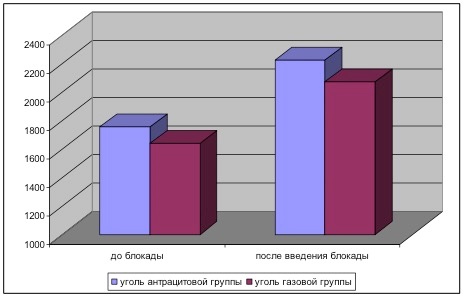 В результате блокады Донбасса цена на энергоносители растет стремительными темпами. По данным НКРЭКУ, цены на уголь антрацитовой группы выросли с 1757 до 2222 грн за тонну, а на уголь газовой группы ― с 1641 до 2071 грн за тонну. Таким образом, общий рост цен на уголь в Украине уже составил 26,5%.