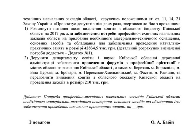 балансу та відправила зверненням до Київської обласної державної адміністрації,