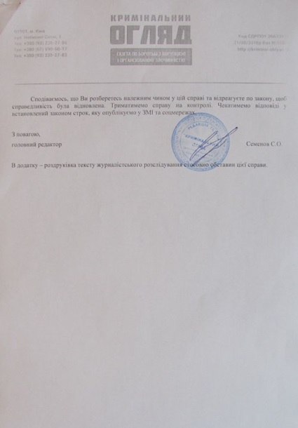 органів ні до чого не призвели. Тому «Кримінальний огляд» спрямовує відкритий