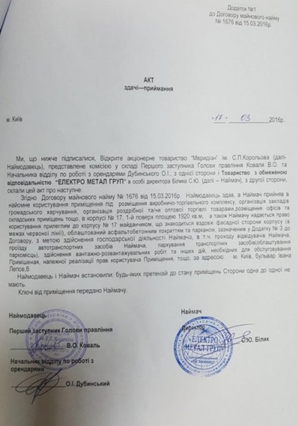 контракт «Меридіану» з фірмою «Електро Метал Груп», яка орендує майже 14 тисяч квадратних