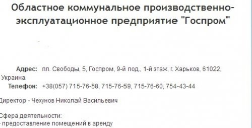 коммунального предприятия «Госпром», в сфере деятельности которой -