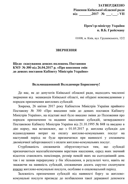 Висловлюванням підтримки звернень Київська обласна рада