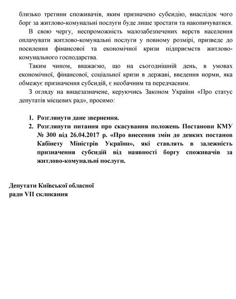 Розповім докладніше про що йде мова в поданих мною зверненнях як депутата Київоблради