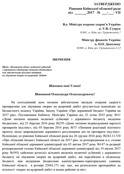 Київської обласної ради, підготувала звернення до в.о.