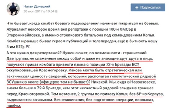 сетях, про смерть боевиков, действия “опытных ополченцев” не слаженные, без