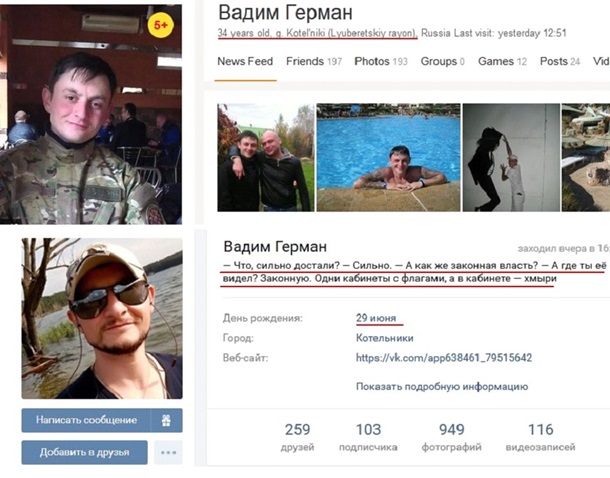 “российских добровольцев”, сделав маленькую, в две строчки, запись в социальных