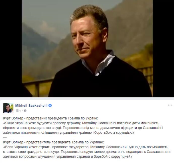 Екс-Президент Грузії Mikheil Saakashvili перебрехав слова Курта Волкера. У себе на Фейсбук він поділився відео і дав текстовий переклад одного фрагменту.