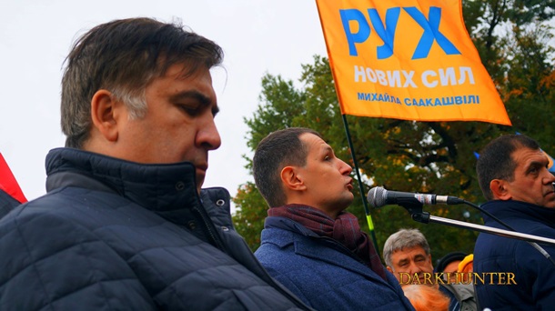 мегафону, що надав один з присутніх активістів. Наприкінці виступу Саакашвілі
