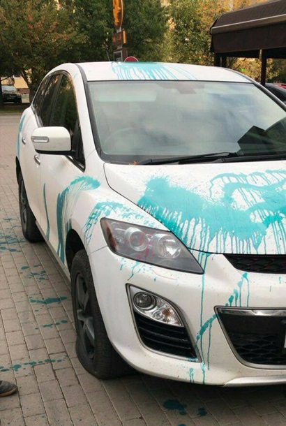 Як наслідок, в ніч з 6-го на 7-ме жовтня біля багатоповерхівки по вул. Легоцького було облито зеленкою автомобіль родича депутата, який поставив на місце дебошира Молнара Є. 30.09.2017 року.