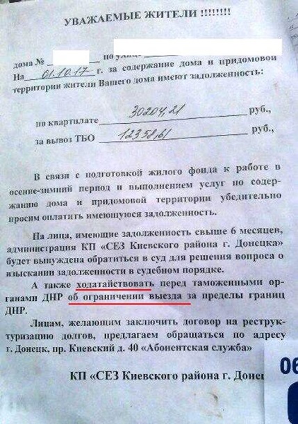 Местные коммунальщики рассылают предупреждения об ограничении должникам выезда за пределы «республики»
