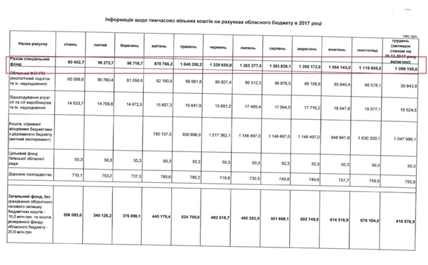 тимчасово вільні кошти обласного бюджету за 2017 рік, що зберігаються на